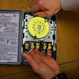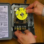 The safest and easiest way to turn the power off is to switch off the appropriate breaker in the electrical distribution panel box. Before removing timer, mark wires as to what number terminals they are on & disconnect them. It is most important to mark the wires or if color coded, to note where each wire came from. Each terminal board has numbers on their screw terminals and these should match the manufacturer’s electrical label on the inside of the front enclosure door. Note line, load and neutral terminals and wires.